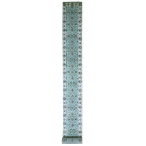 2'9"x29'10" Iceberg Blue, All Over Shah Abbas Flower Design, Veggie Dyes, Densely Woven, Agra, Natural Wool, Hand Knotted, Xl Runner, Oriental Rug FWR456744