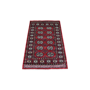 3'x4'9" Rich Red Pure Wool Hand Knotted Mori Bokara With Geometric Medallions Design Oriental Rug FWR415350
