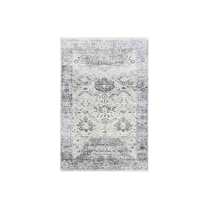 2'8"x5'10" Gray And Blue, Wool And Silk Hand Knotted, The Honeycomb Award Winning Design, Oriental Rug FWR387372