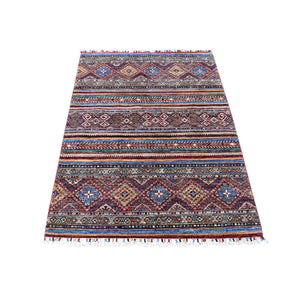 3'5"x5' Rich Red, Hand Knotted Pure Wool, Afghan Super Kazak With Khorjin Design Natural Dyes, Oriental Rug FWR481272