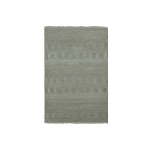 3'x5'3" Charcoal Gray, Hand Knotted Modern Vertical Ombre Design, Pure Silk With Textured Wool, Oriental Rug FWR451572