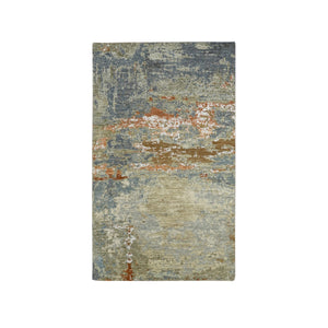 3'2"x5'2" Powder Blue, Wool And Real Silk, Abstract Design, Denser Weave, Hi-low Pile, Hand Knotted, Oriental Rug FWR453216
