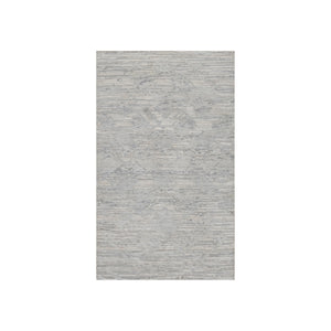 3'x5'1" Cloud Gray, Modern Design, Hand Spun Undyed Natural Wool, Cut And Loop Pile, Hand Knotted, Oriental Rug FWR547680