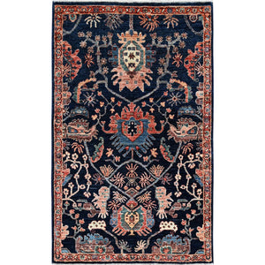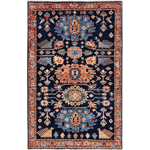 3'x5'1" Midnight Blue, Heriz All Over Design, Aryana Collection, Vegetable Dyes, Soft Pile, Hand Knotted, High Mountain Wool, Densely Woven, Oriental Rug FWR6492