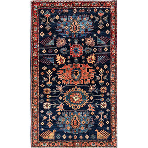 3'x4'10" Midnight Blue, Aryana Collection, Heriz All Over Design, Vegetable Dyes, Soft Pile, Hand Knotted, High Mountain Wool, Densely Woven, Oriental Rug FWR6480