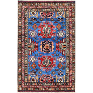 3'x4'8" Bayern Blue, Afghan Ersari With Turkish Knot, Caucasian Design Revival, Vegetable Dyes, Densely Woven, Hand Knotted, Soft And Velvety Wool, Oriental Rug FWR3780