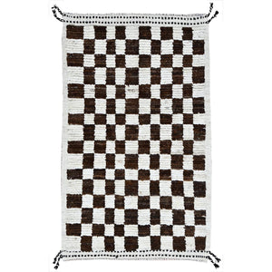 2'10"x4'10" Chocolate Brown And Ivory, Moroccan Weave With Squares Design, Tone On Tone, Textured Pile, Undyed Natural Wool, Hand Knotted, Oriental Rug FWR8286