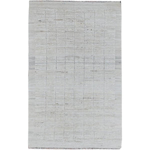 3'x5' Alabaster White, Moroccan Weave With Grid Design, Tone On Tone, Undyed Natural Wool, Textured Pile, Hand Knotted, Oriental Rug FWR8292