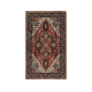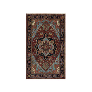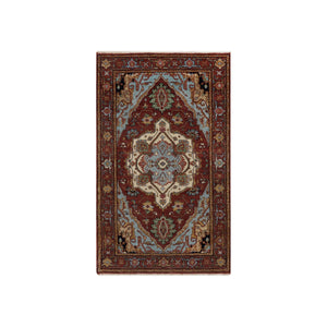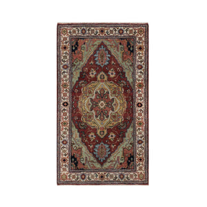 3'x5' Brick Red, Antiqued Fine Heriz Re-creation, Medallion Design, Hand Knotted, Soft Pile, Hand Spun New Zealand Wool, Vegetable Dyes, Oriental Rug FWR548982