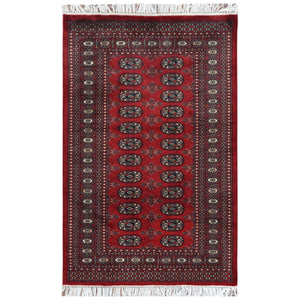3'1"x4'10" Hand Knotted Saturated Red Denser Weave Silky Wool 250 Kpsi Super Bokara Oriental Rug FWR368292