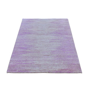 3'1"x5'4" Hand Knotted Pink Thick And Plush Organic Wool Only Horizontal Ombre Design Oriental Rug FWR400512