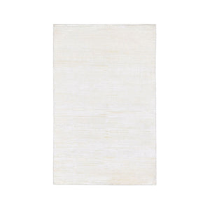 3'1"x5'1" Ivory Silk With Textured Wool Tone On Tone Striae Design Hand Knotted Hi-low Pile Oriental Rug FWR400842