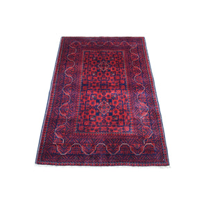 3'3"x5' Afghan Khamyab With Tribal Medallions Design Denser Weave With Shiny Wool Hand Knotted Deep And Saturated Red Oriental Rug FWR408552
