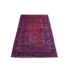 3'3"x5' Tribal And Geometric Design Denser Weave With Shiny Wool Deep And Saturated Red Afghan Khamyab Hand Knotted Oriental Rug FWR407766