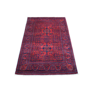 3'3"x5' Deep And Saturated Red Afghan Khamyab With Vegetable Dyes Denser Weave With Shiny Wool Hand Knotted Oriental Rug FWR408576