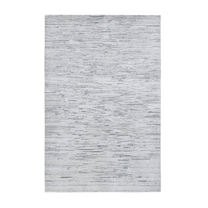 6'1"x9'4" Frost White, 100% Wool, Striae Design, Hand Knotted, Oriental Rug FWR485946