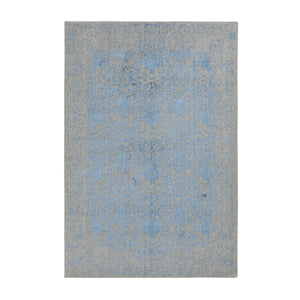 6'x9'1" Old Silver Gray, Pure Silk With Textured Wool, Tone On Tone Repetitive Jewlery Design, Hand Knotted, Oriental Rug FWR485970