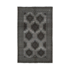 6'3"x9'10" Agreeable Gray, Earthtone Color, Vintage Afghan Balooch With Bold Geometric Pattern, Natural Color, Hand Knotted, Pure Wool, Oriental Rug FWR527784
