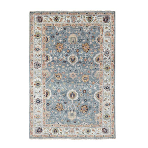 6'x9' Debonair Gray With Silky White, Hand Knotted Oushak Design, Organic Wool, Thick And Plush, Supple Collection, Oriental Rug FWR509790