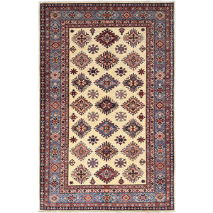 6'x9'3" Heron White, Natural Dyes, Densely Woven Organic Wool, Hand Knotted Afghan Super Kazak Geometric Elements Oriental Rug FWR519354