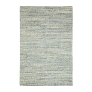 6'x9' Seafoam Green Variegated Textured Design Hand Loomed Pure Wool Modern Oriental Rug FWR350346