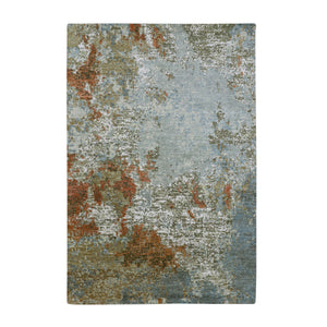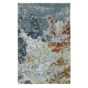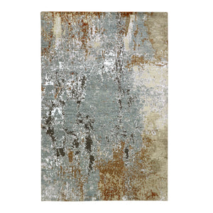 6'1"x9'2" Misty Gray With Rust, Persian Knot, Abstract With Galaxy Design, 100% Wool, Hand Knotted, Densely Woven, Oriental Rug FWR498996
