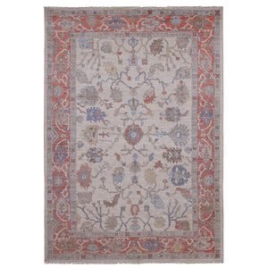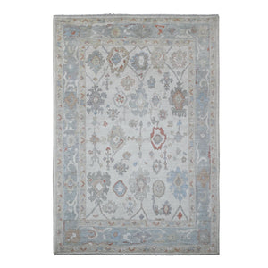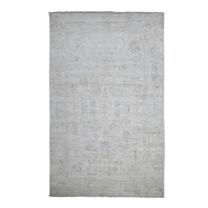 6'x9'8" Chiffon White, Hand Knotted, Afghan Angora Oushak With Faded Leaf Design, Natural Dyes, 100% Wool, Oriental Rug FWR125598