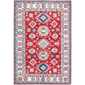 6'3"x9' Ajax Red, Kazak With Tribal Medallions Design, Hand Knotted, Soft And Velvety Wool, Denser Weave, Vegetable Dyes, Oriental Rug FWR3198