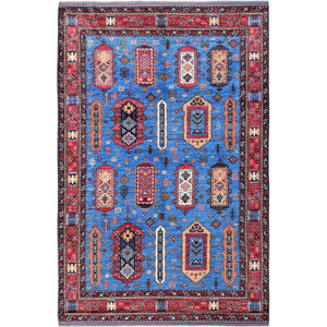 6'2"x8'7" Maya Blue, Kazak With Tribal Medallion Design, Denser Weave, Vegetable Dyes, Hand Knotted, Soft And Shiny Wool, Oriental Rug FWR3210
