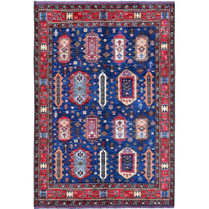 6'x8'9" Carolina Blue, Kazak With Tribal Pattern, Hand Knotted, Denser Weave, Soft And Velvety Wool, Vegetable Dyes, Oriental Rug FWR3216
