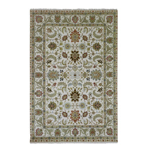 6'1"x9'3" Chiffon White, Agra With Ziegler Design, Floral Motifs, Pure Wool, Hand Knotted, Vegetable Dyes, Oriental Rug FWR499230