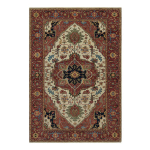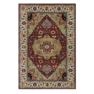 6'1"x9'2" Brick Red, Antiqued Fine Heriz Re-creation With Medallion Design, Plush And Lush Pile, Hand Knotted, 100% Wool, Denser Weave, Vegetable Dyes, Oriental Rug FWR548382