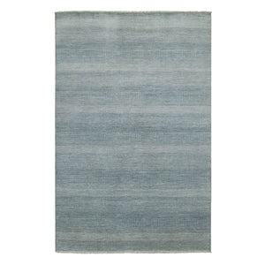 6'x9' Yankees Blue, Densely Woven Tone On Tone, Soft To The Touch Wool And Silk, Hand Knotted Grass Design, Oriental Rug FWR476178