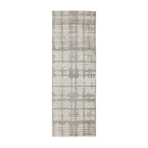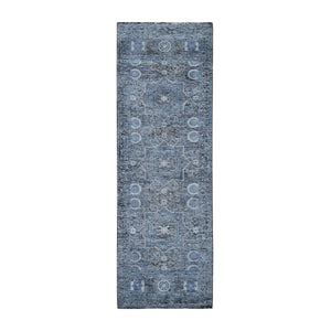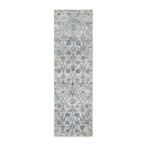 2'10"x8' Gray Broken Persian Erased Design Runner Silk With Textured Wool Hand Knotted Oriental Rug FWR348132