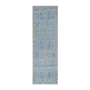 2'5"x8' Blue Fine Broken Cypress Tree Design Wool And Art Silk Runner Thick Hand Loomed Oriental Rug FWR348696