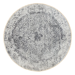 7'9"x7'9" Gray Fine Jacquard Hand Loomed Modern Wool And Art Silk Round Oriental Rug FWR348714