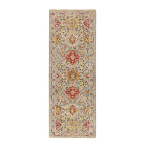 2'9"x7'10" The Sunset Rosettes Wool And Pure Silk Runner Hand Knotted Oriental Rug FWR350640