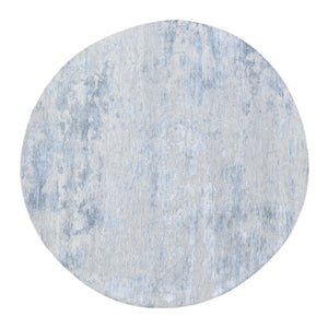 8'1"x8'1" Round Blue Wool And Pure Silk Jewellery Design Hand Knotted Oriental Rug FWR354000