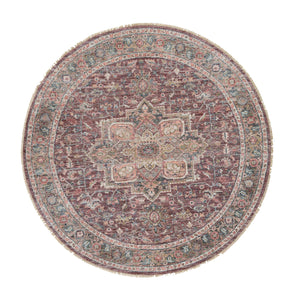 8'x8' Light Burgundy, Vegetable Dyes, Soft Wool, Heriz Revival, Thick And Plush, Hand Knotted, Round Oriental Rug FWR393672