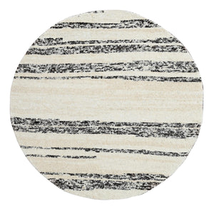 8'x8' Ivory With Charcoal Black, Hand Knotted, Thick And Plush, Tone On Tone Modern Design, Undyed Natural Wool, Round, Oriental Rug FWR506610