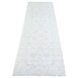 2'9"x7'8" Rose White, Natural Dyes, Shiny Wool, Hand Knotted, White Wash Peshawar With Faded Design, Runner Oriental Rug FWR446214