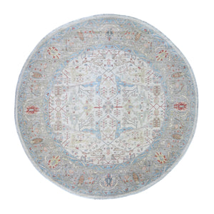 8'x8' Stone Eagle Gray, Hand Knotted, All Over Ziegler Mahal Design, High Grade Wool, Vegetable Dyes, Round Oriental Rug FWR448920
