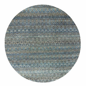 8'x8' Yale Blue, Kohinoor Herat Small Geometric Repetitive Design, 100% Plush Wool, Hand Knotted, Round Oriental Rug FWR476796