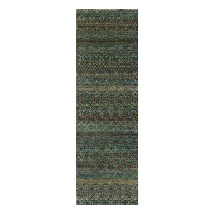 2'8"x8' Medium Gray, Karajeh And Geometric Design, Pure Wool, Hand Knotted, Runner Oriental Rug FWR508326