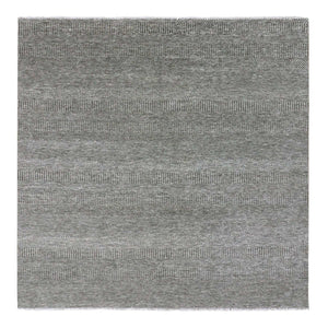 8'1"x8'2" Harbor Gray, Organic Undyed Wool, Modern Grass Design, Tone On Tone, Square Hand Knotted Oriental Rug FWR477534