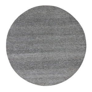 7'9"x7'9" Perfect Gray, Tone On Tone, Undyed Pure Wool, Grass Design, Hand Knotted, Round Oriental Rug FWR477090