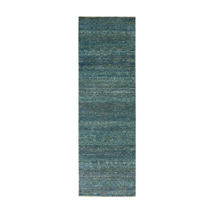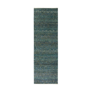 2'6"x8' Retro Cyan Forest Green, Diamond Shape Repetitive Design, Borderless Hand Knotted, Kohinoor Herat, 100% Wool, Tone On Tone, Runner Oriental Rug FWR478020