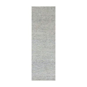 2'6"x8'1" Knitting Needles Gray, Borderless, Shabby Chic, Modern Pure Undyed Wool Hand Knotted With Grass Design, Tone On Tone, Oriental Runner Rug FWR478914