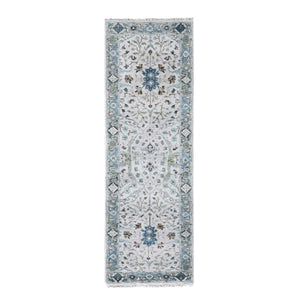 2'3"x8' Miller Mood Gray, Velvety And Soft Wool, Densely Woven, Hand Knotted, Floral Motifs Oushak Design Oriental Runner Rug FWR509130
