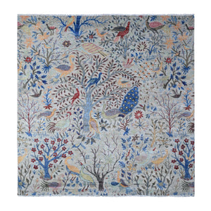 8'x8' Iridium Gray, Afghan Peshawar With Birds Of Paradise, Vegetable Dyes, Tree Of Life, Extra Soft Wool, Hand Knotted Square Oriental Rug FWR533202